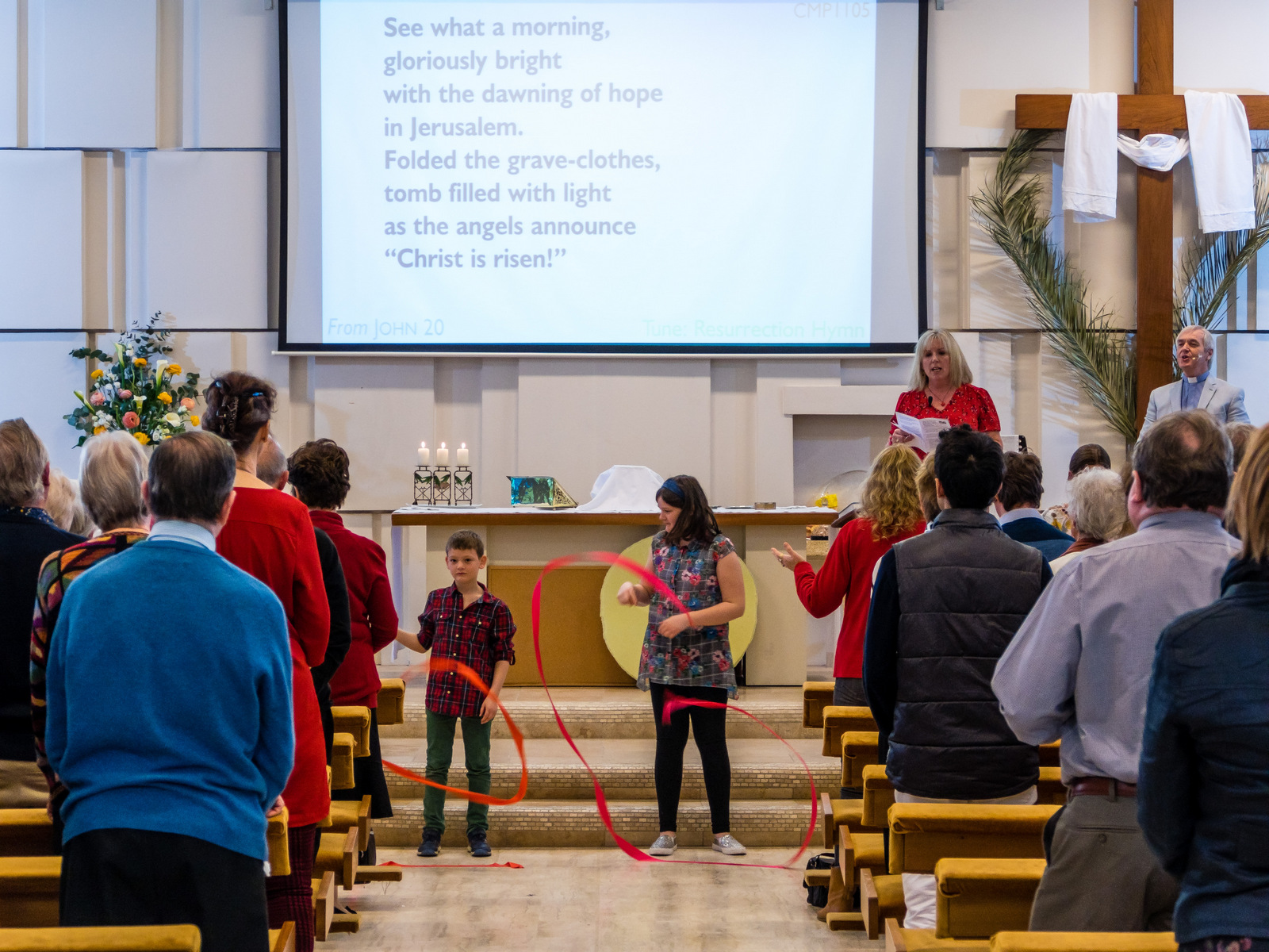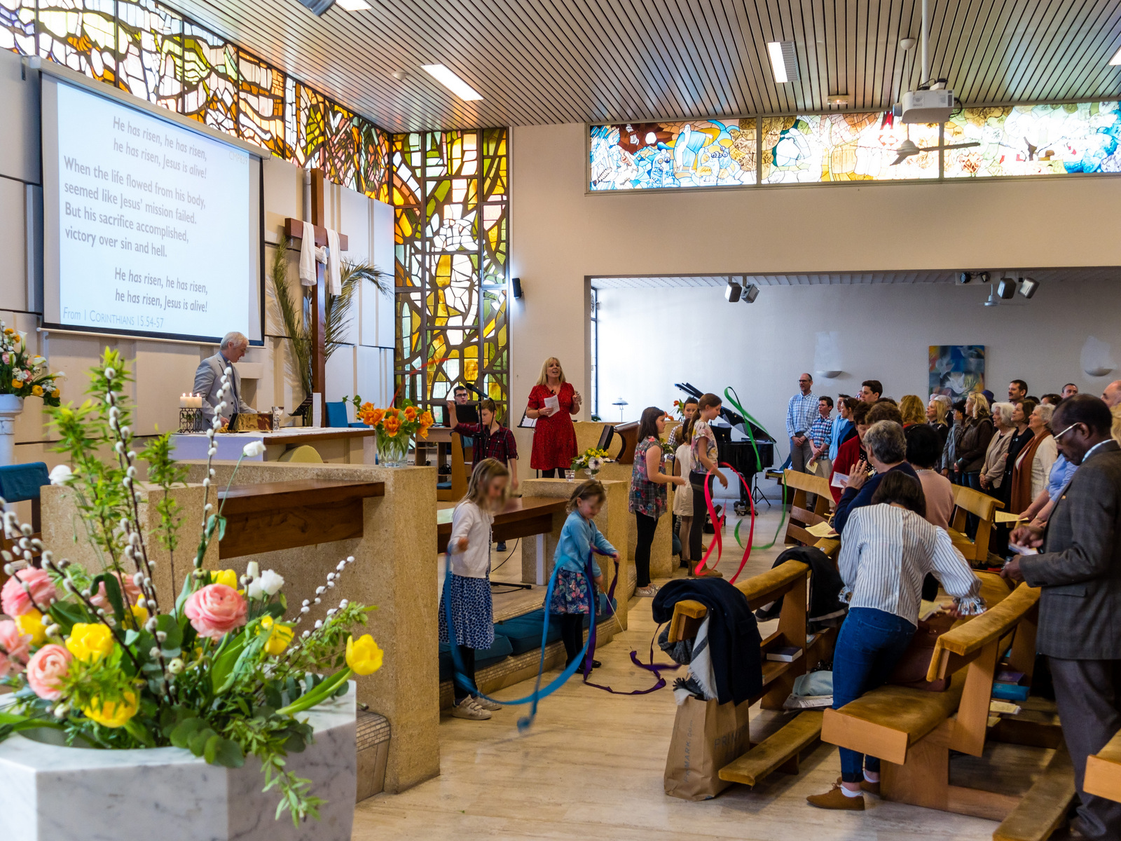 The church was full on Sunday morning to celebrate the resurrection of Christ in a joyful Easter service. We were delighted to welcome many visitors and friends! Our children also joined in with ribbons and percussion as we heard the resurrection story through readings, songs, prayers and some poems.